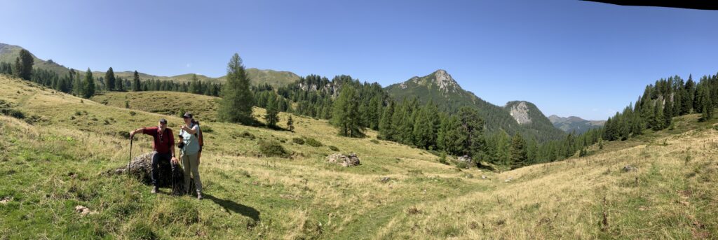 Nachdem wir uns gestern einen Faulenzertag im Freibad gegönnt haben, sind wir heute wieder in den Bergen unterwegs gewesen. Diesmal vom benachbarten Tal aus. Also mussten wir morgens erst einmal bis Sankt Johann im Pongau aus unserem Tal herausgefahren, um dann in Richtung Großarl in das nächste Tal wieder hineinzufahren – bis zum Parkplatz Grundlehen. Dort haben wir unsere Runde gestartet – zuerst ordentlich bergauf (ca. 650 Höhenmeter), vorbei an der Filzmoosalm, über ein schönes Bergplateau bis zum höchsten Punkt dieser Wanderung, dem Loosbühel (2046 m). Dort wurden wir mit einem wunderschönen Rundblick über die umliegende Bergwelt belohnt. Von dort aus ging bergab zur Weißalm, wo wir uns ein ordentliches „Jausenbrettl“ mit Wurst, Schinken und Käse, dazu Brot, Butter und Knoblauchcreme und viel Holler genehmigt haben. So gestärkt haben wir den nicht ganz unanstrengenden, teils steilen Abstieg gut geschafft.
